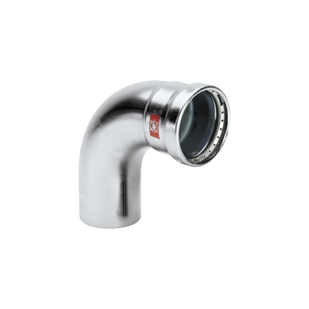 Prestabo XL LF-łuk 90°, z SC-Contur, labs-frei (odtłuszczone), stal niestopowa, ocynkowana, końcówka wsuwana, przyłącze zaprasowywane. Wyposażenie: Element uszczelniający EPDM, pierścień nacinający, pierścień oddzielający, nr wzoru 1116.1XLLF, nr kat. 715 861, dopuszczenie VdS, d: 88,9