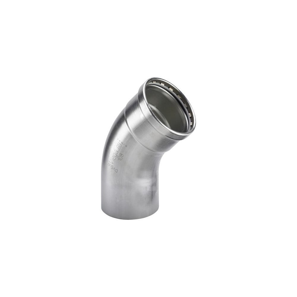 Łuk Sanpress 45' VIEGA 2326.1XL Jednoczęściowy, stal nierdzewna / stal nierdzewna, 64 mm (kw x mz) z uszczelką