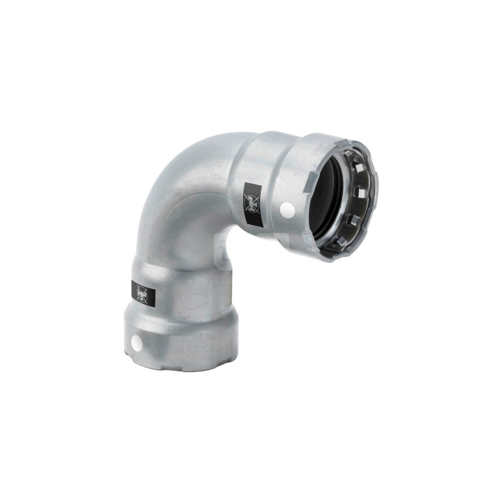 Megapress S-łuk 90 st. z SC-Contur stal niestopowa, powłoka cynkowo-niklowa, przyłącza zaprasowywane, nr wzoru 4316 centralne ogrzewanie zgodne z AGFW FW 524 DN: 15 D: ½
