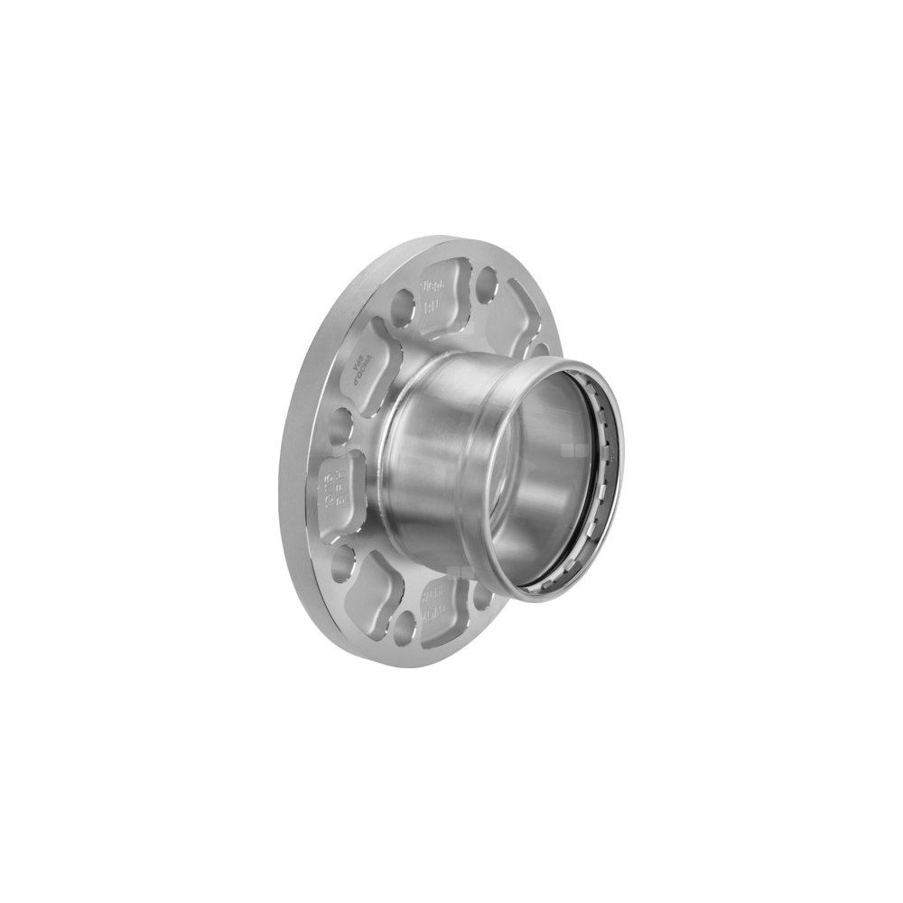 Sanpress Inox XL-przejście kołnierzowe, z SC-Contur, stal nierdzewna, przejście kołnierzowe, przyłącze zaprasowywane. Wyposażenie: Stały kołnierz PN 10/16, element uszczelniający EPDM, pierścień nacinający, pierścień oddzielający, nr wzoru 2359XL, nr kat. 616 809, DN: 50 d: 64,0 liczba otworów: 4 Ø otworu: 125 mm,