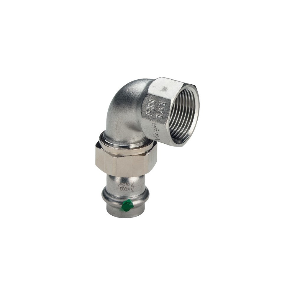 Złącze przejściowe Sanpress 90' VIEGA 2355 Jednoczęściowy, stal nierdzewna / stal nierdzewna, 18 mm, 1/2'' (mz x gwm) z uszczelką