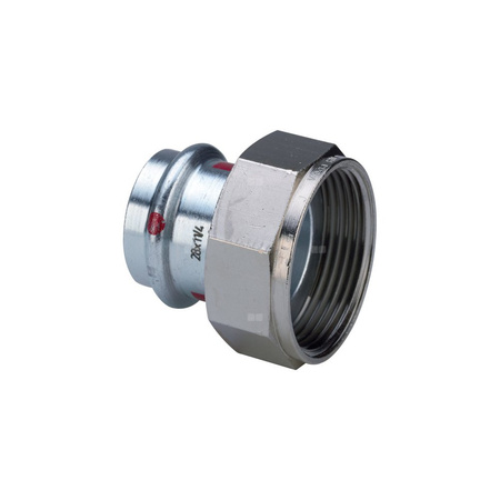 Prestabo-dwuzłączka przyłączeniowa, z SC-Contur, stal niestopowa, ocynkowana, przyłącze zaprasowywane, gwint G, uszczelnienie płaskie. Wyposażenie: Uszczelka płaska EPDM, element uszczelniający EPDM, wielokąt, nr wzoru 1163, nr kat. 601 058, d: 15 G: 1