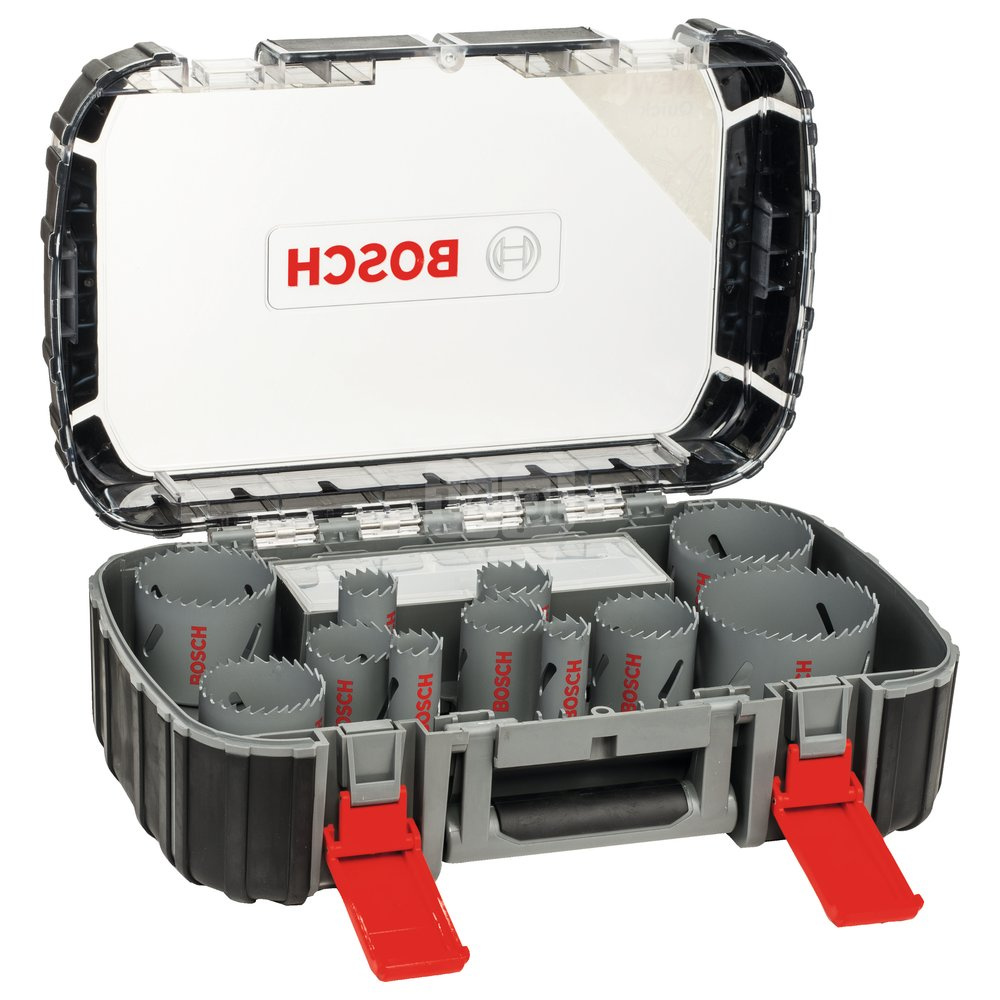 11 pił otwornic, 1 adapter Q-Lock, 3 dodatkowe adaptery, 2 wiertła centrujące HSS