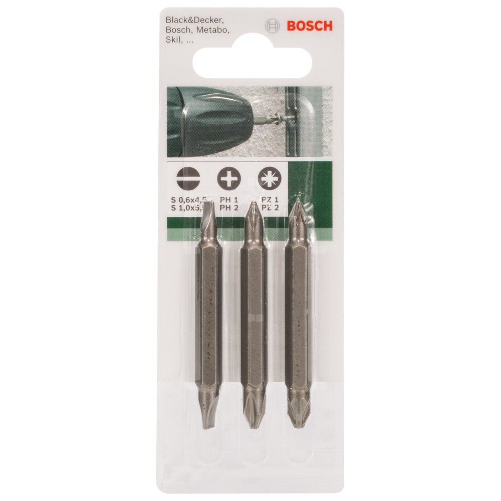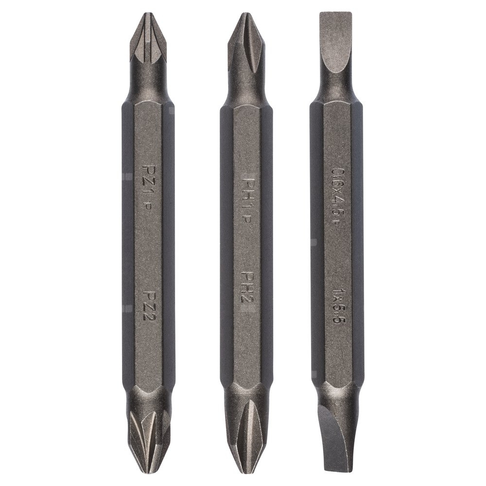 3-częściowy zestaw podwójnych końcówek wkręcających, mieszany (S, PH, PZ) S0,6x4,5-S1,0x5,5, PH1-PH2, PZ1-PZ2, 60 mm