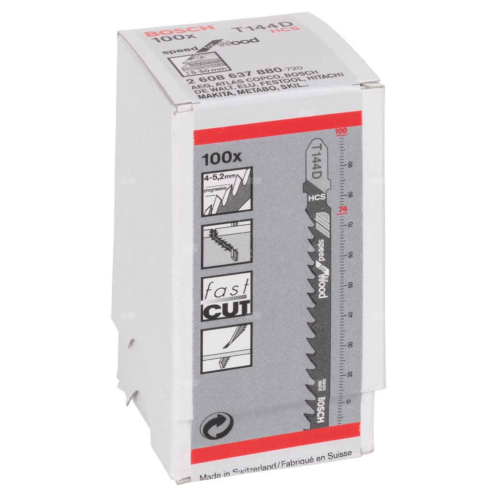 | Tekst produktu, osprzęt szary | T 144 D HCS, zęby rozwarte, szlifowane Miękkie drewno (5-50 mm), płyty wiórowe, stolarskie, pilśniowe |