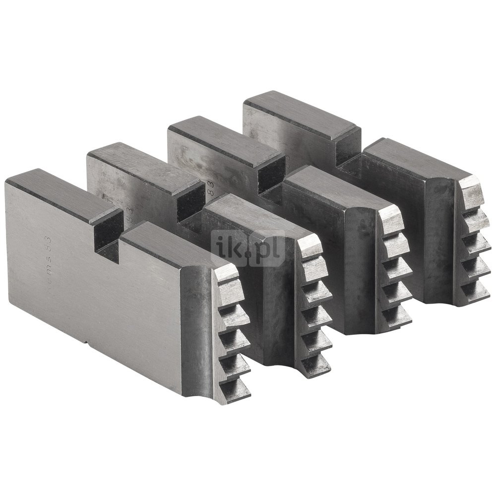 Grzebieniowe noże i mocowania (zest. gwint.)Niezawodne, umożliwiające kolejne ostrzenia styczne grzebieniowe noże gwintujące z optymalną geometrią cięcia gwarantują bardzo lekkie wejście w materiał, gwintowanie i czyste gwinty. WS grzebieniowe noże gwintujące z ciągliwo twardej specjalnie hartowanej stali dla materiałów do 500 N/mm2. HSS grzebieniowe noże gwintujące do ciężko skrawalnych materiałów ponad 500 N/mm2. Wszystkie grzebieniowe noże gwintujące są przeznaczone dla jednego systemu mocowania. Noże i ich mocowania tworzą jeden zestaw gwintujący.