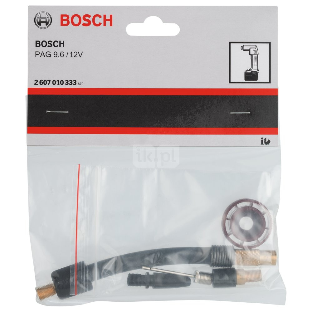 Składający się z przewodu sprężonego powietrza, nakrętki uszczelniającej, uszczelki gumowej, zaworu do pompowania piłek, kół rowerowych i materaców dmuchanych