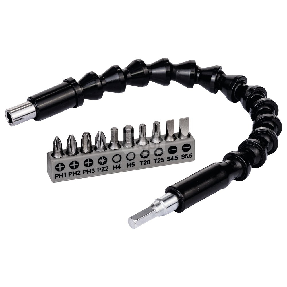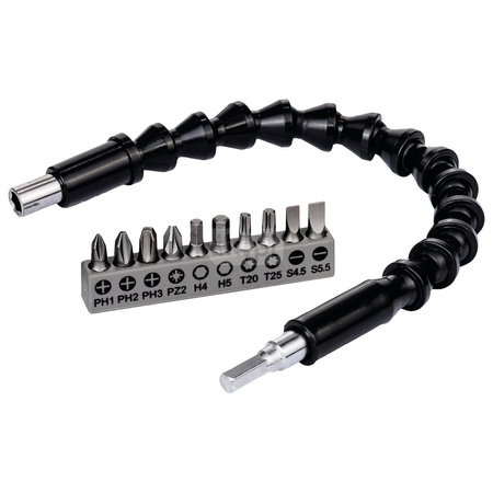 Plastikowa, elastyczna przedłużka SDB, 11 szt. Plastikowa, elastyczna przedłużka, 300 mm, zestaw końcówek wkręcających PH1, PH2,
