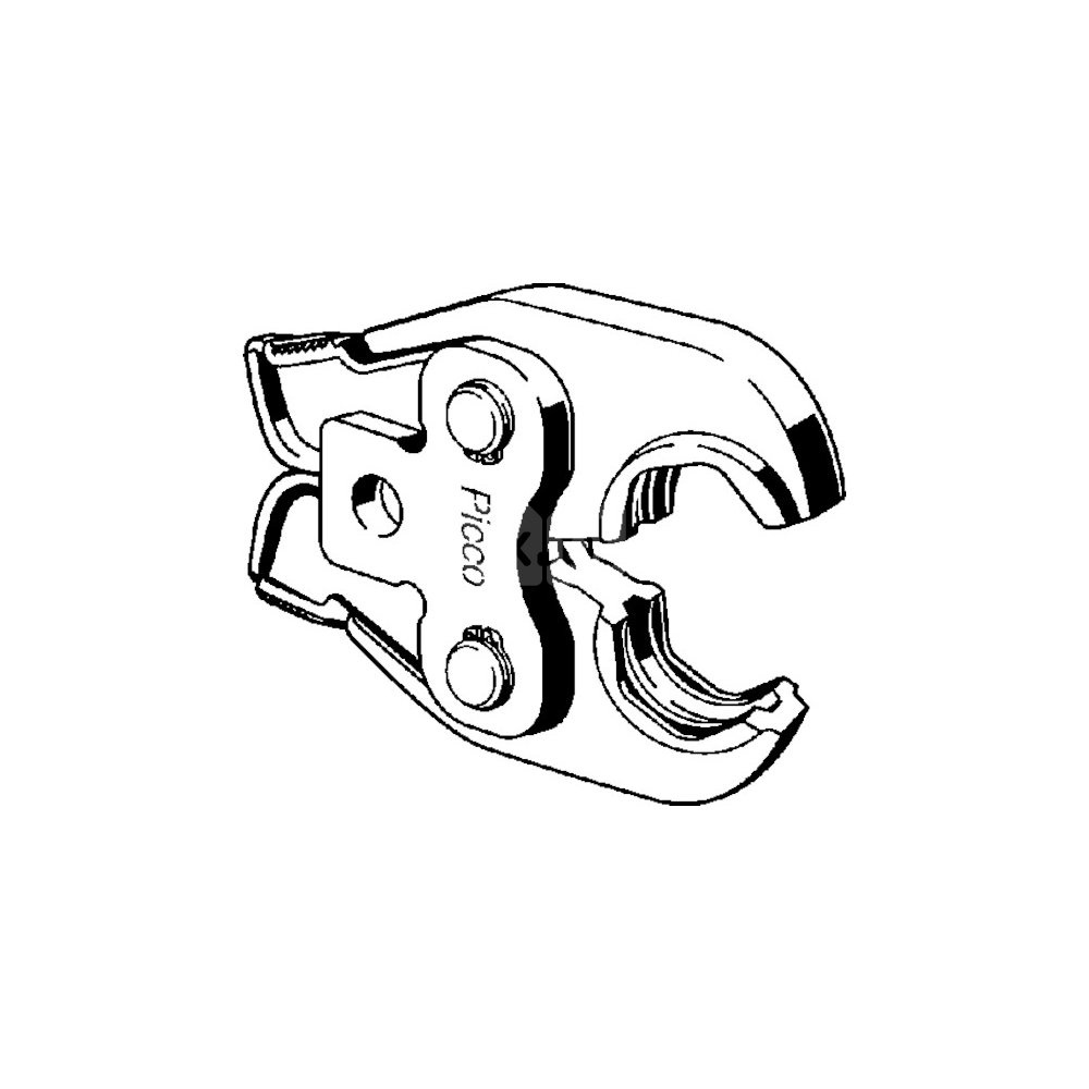 Szczęka zaciskowa, Picco, z funkcją samoczynnego zamykania, do metalowych systemów zaprasowywanych, zalecane do Pressgun Picco 6 Plus, Pressgun Picco 6, Pressgun Picco, zaciskarka akumulatorowa Picco, Ridgid RP 210, stal fosforanowana. Wskazówka: Montaż jedną ręką dzięki samodzielnemu zamknięciu szczęki zaciskowej podczas procesu zaprasowywania!, nr wzoru 2489.9, nr kat. 735 388, dla d: 15