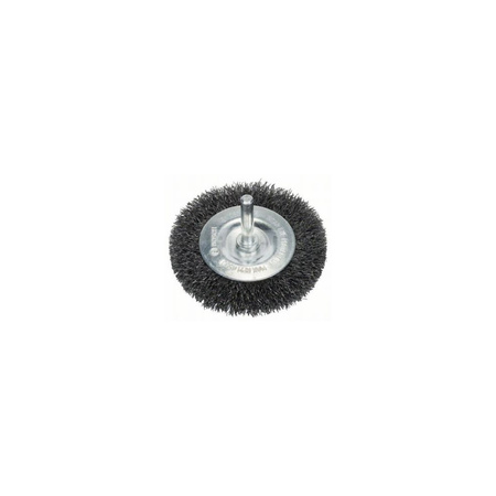 Tekst produktu, osprzęt szary Szczotka tarczowa – drut falisty Optymalne narzędzie do usuwania kolorowego nalotu na spawach . Do lekkich i średniociężkich prac związanych z czyszczeniem małych powierzchni metalowych, rowków lub krawędzi, jak np. usuwanie korozji, bruzdkowanie, matowanie i usuwanie lakieru.