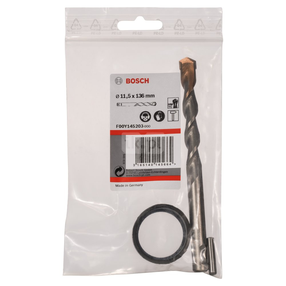 | Tekst produktu, osprzęt, szary | Zestaw do mocowania: wiertło prowadzące z trzpieniem mocującym i gumowym pierścieniem o-ring |