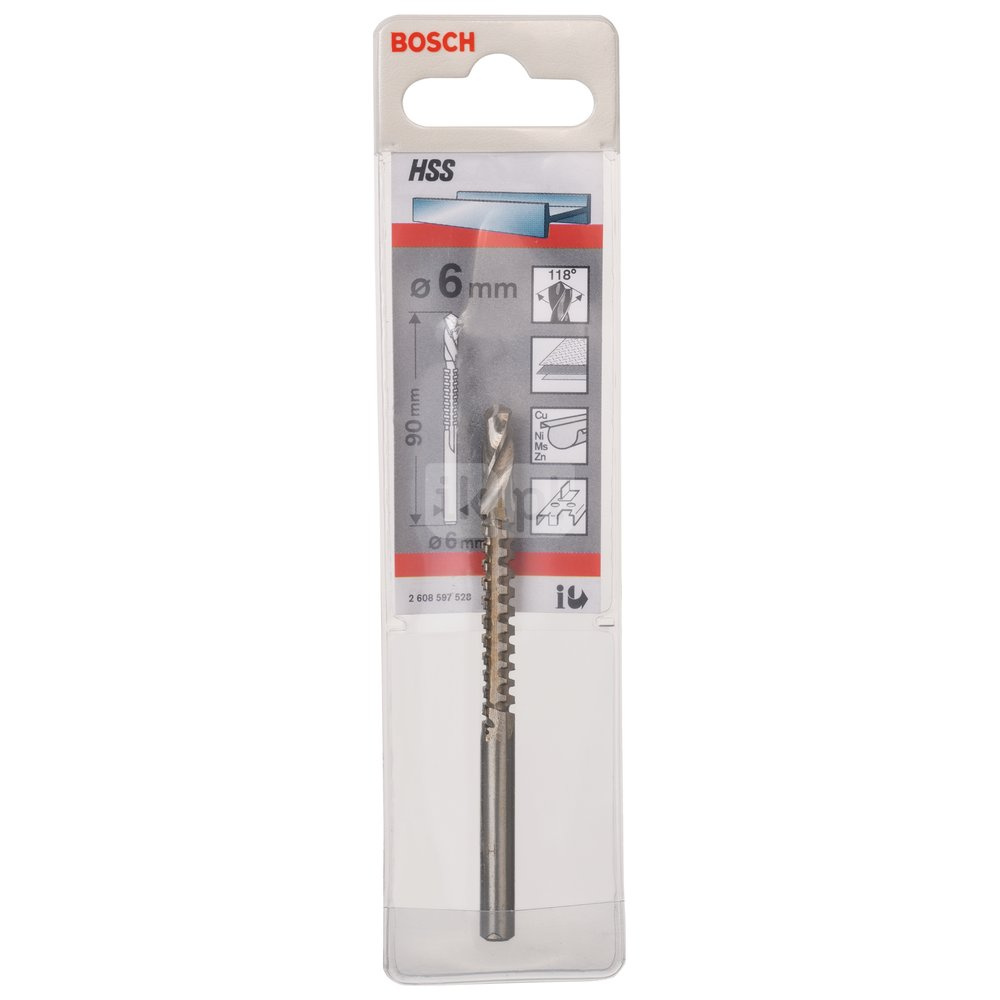 | Tekst produktu, osprzęt, szary | Wiertło frezowe ze stali szybkotnącej HSS, ostrze szlifowane krzyżowo z kątem wierzchołkowym 118°, głęboko tłoczone zęby tnące Do drewna i metali kolorowych Zalecana prędkość obrotowa: 1000 do 2000 min-1 |