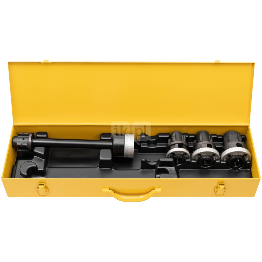 Wyjątkowo lekkie wejście w materiał i gwintowanie. Dźwignia z zapadką ze stali, grubo powleczona tworzywem. Tylko jeden rodzaj szybkowymiennych głowic gwintujących. Niezniszczalne wysokiej jakości noże gwintujące.