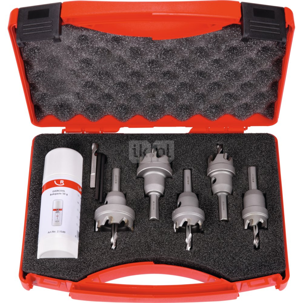 W zestawie uchwyt oraz wymienne wiertło centrujące HSS do materiału do grubości 4 mm, głębokość wiercenia 10 mm;