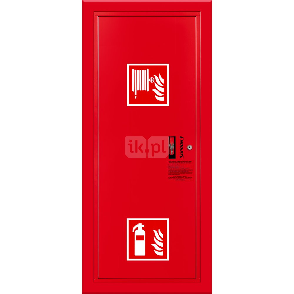 - szafka hydrantowa OCYNKOWANA wykonana z blachy stalowej ocynkowanej elektrolitycznie malowanej farbą proszkową poliestrową fasadową typu Facade w kolorze czerwonym (RAL 3000) lub białym (RAL 9003), drzwi pełne; dzięki zastosowaniu zawiasu krytego drzwi szafki można otworzyć o 180°