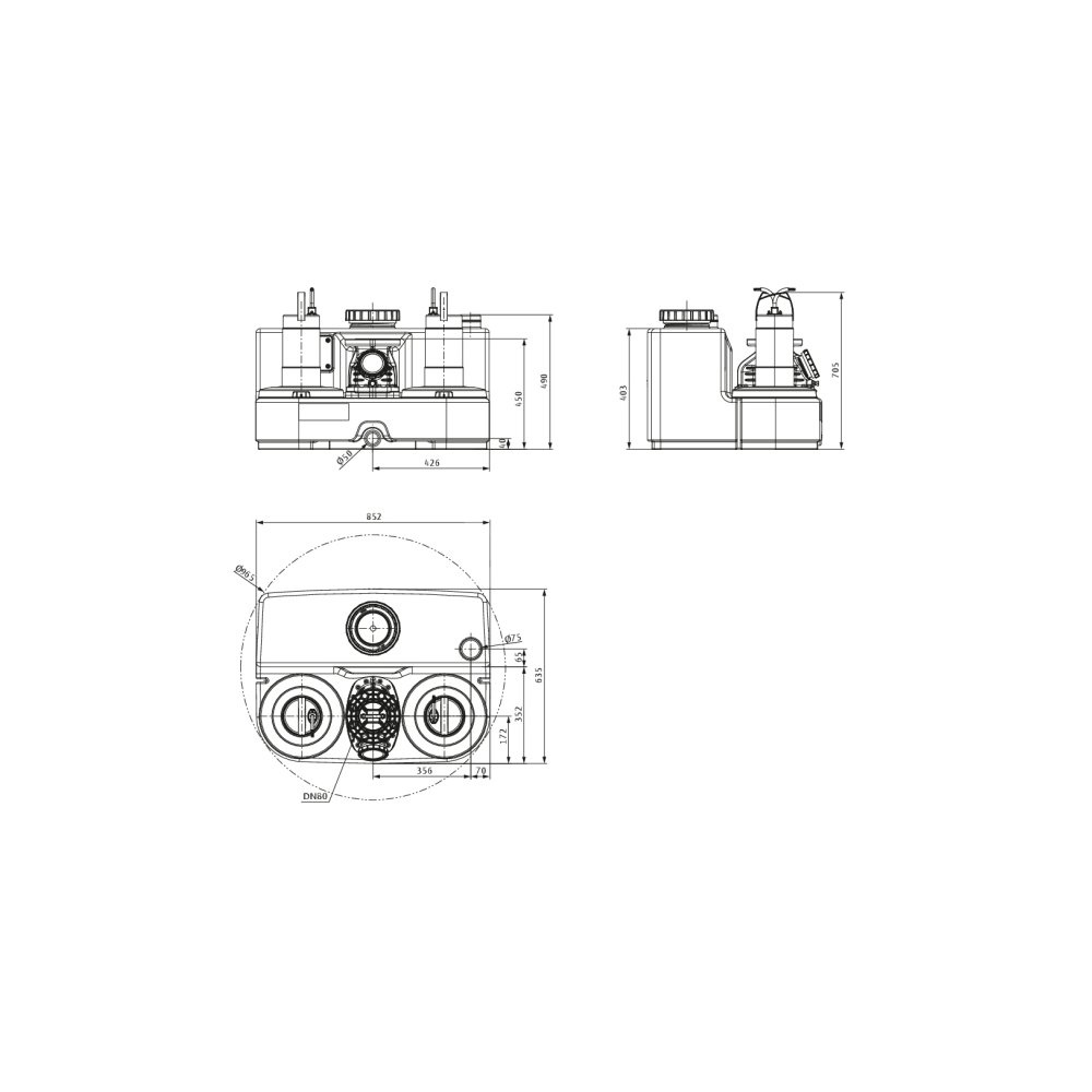Kompaktowe, gotowe do podłączenia i całkowicie zanurzone urządzenie do przetłaczania do tłoczenia ścieków zawierających fekalia z pompą podwójną.
