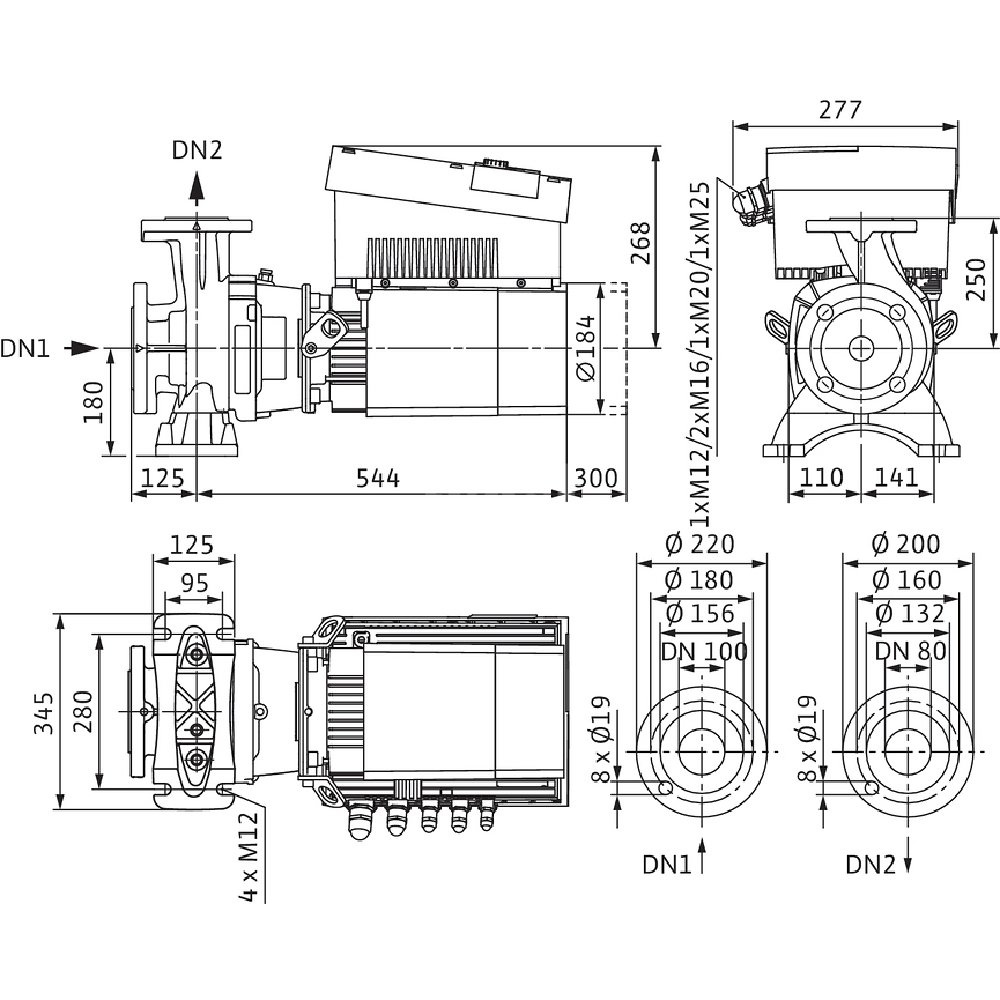 Pompa obiegowa blokowa Wilo-Stratos GIGA B 80/1-27/4,5-R1 o najwyższej sprawności z silnikiem EC i elektronicznie regulowanym dopasowaniem wydajności, o konstrukcji dławnicowej. Jednostopniowa, niskociśnieniowa pompa wirowa z przyłączem kołnierzowym i usz