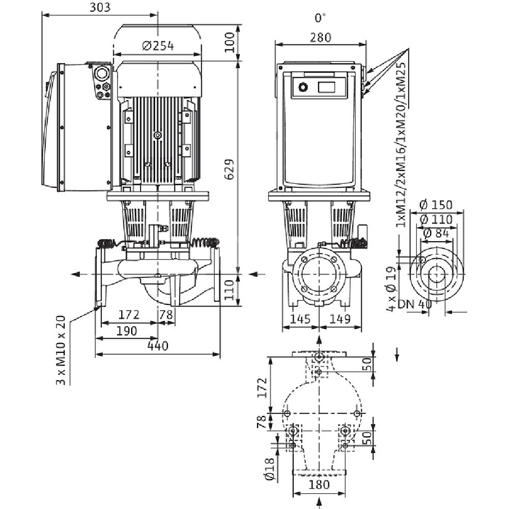 Pompa obiegowa WILO CronoLine-IL-E 40/200-7,5/2 IE4 typu in-line z silnikiem znormalizowanym 50/60 Hz, moc silnika 7.5kW 13.8 A 2900 obr/min, wlot Kołnierz DN 40