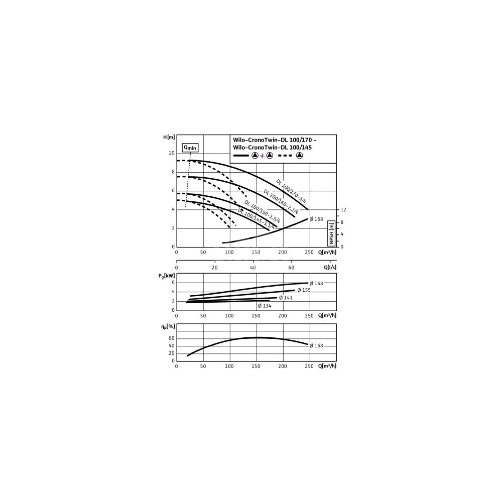 Pompa obiegowa WILO CronoTwin-DL 100/160-2,2/4-IE3 typu in-line z silnikiem znormalizowanym 50 Hz, moc silnika 2.2kW 4.9 A 1450 obr/min, wlot Kołnierz DN 100
