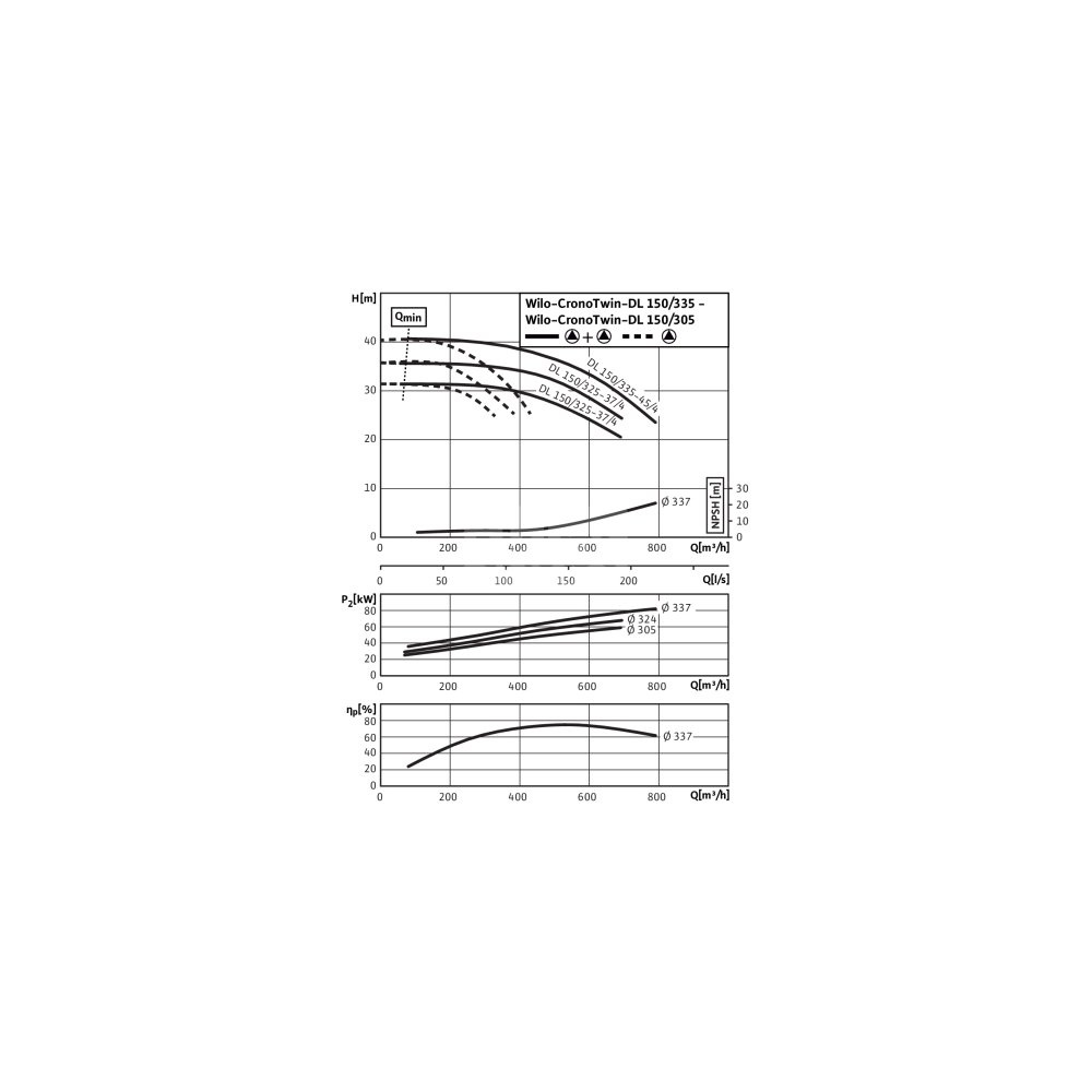 Pompa obiegowa WILO CronoTwin-DL 150/335-37/4-IE3 typu in-line z silnikiem znormalizowanym 50 Hz, moc silnika 37kW 71.3 A 1450 obr/min, wlot Kołnierz DN 150