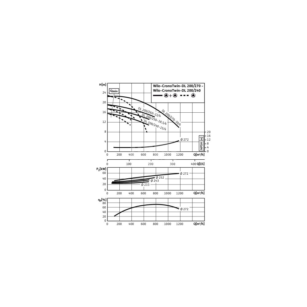 Pompa obiegowa WILO CronoTwin-DL 200/240-15/4-IE3 typu in-line z silnikiem znormalizowanym 50 Hz, moc silnika 15kW 29.8 A 1450 obr/min, wlot Kołnierz DN 200