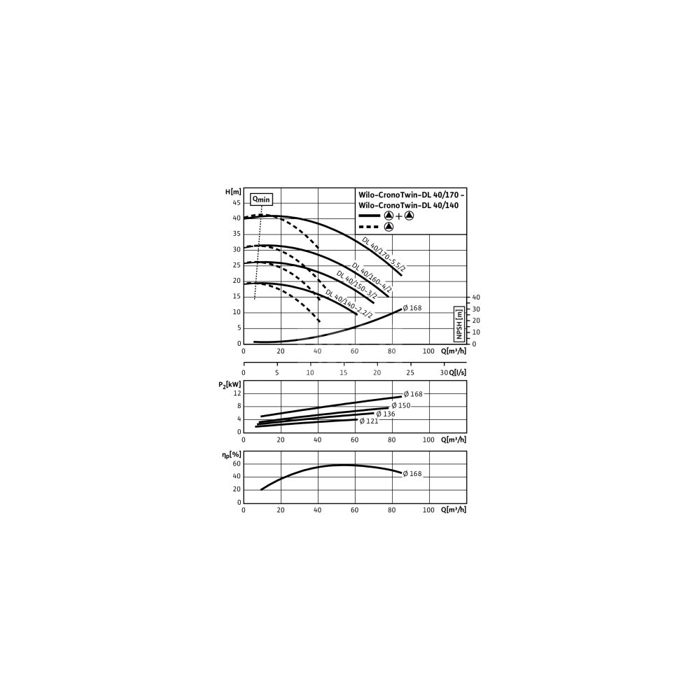 Pompa obiegowa WILO CronoTwin-DL 40/160-4/2-IE3 typu in-line z silnikiem znormalizowanym 50 Hz, moc silnika 4kW 7.75 A 2900 obr/min, wlot Kołnierz DN 40