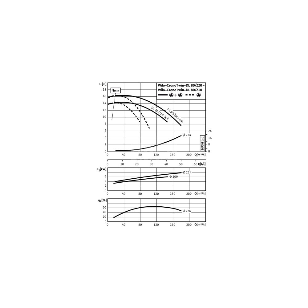 Pompa obiegowa WILO CronoTwin-DL 80/210-3/4-IE3 typu in-line z silnikiem znormalizowanym 50 Hz, moc silnika 3kW 6.5 A 1450 obr/min, wlot Kołnierz DN 80