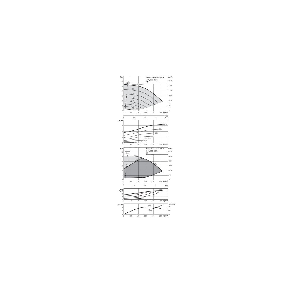 *Interfejsy: Wejście sterujące „Wyłączanie z priorytetem”, „Zewnętrzna zamiana pomp”, wejście analogowe 0-10 V, 2-10 V, 0-20 mA, 4-20 mA do trybu sterowania (DDC) lub do zdalnej regulacji wartości zadanej, wejście analogowe 0-10 V, 2-10 V, 0-20 mA, 4-20 mA dla sygnału wartości rzeczywistej czujnika ciśnienia, złącze na podczerwień do komunikacji bezprzewodowej za pomocą urządzenia kontrolno-serwisowego Wilo-IR-Stick/IR-Monitor, gniazdo na IF-Moduły Wilo do podłączenia do automatyki budynku, konfigurowana, bezpotencjałowa sygnalizacja awarii i pracy/stanu gotowości, interfejs do komunikacji z pompami podwójnymi
