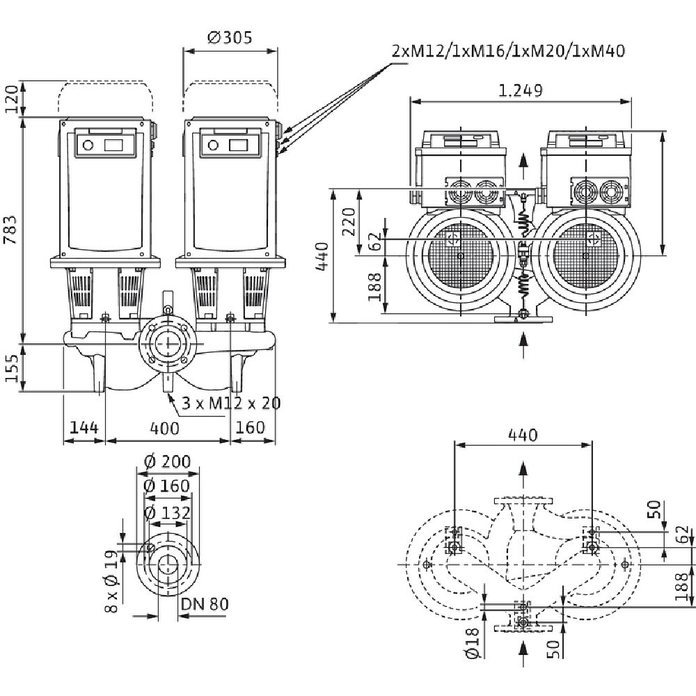 Pompa obiegowa WILO CronoTwin-DL-E 80/160-11/2-R1-S1 typu in-line z silnikiem znormalizowanym 50/60 Hz, moc silnika 11kW 20.6 A 2900 obr/min, wlot Kołnierz DN 80