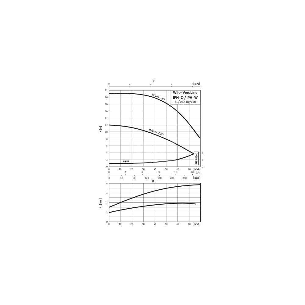 Pompa obiegowa WILO VeroLine-IPH-O 80/140-4/2-IE3 typu in-line z silnikiem znormalizowanym 50 Hz, moc silnika 4kW 7.1 A 2840 obr/min, wlot Kołnierz DN 80
