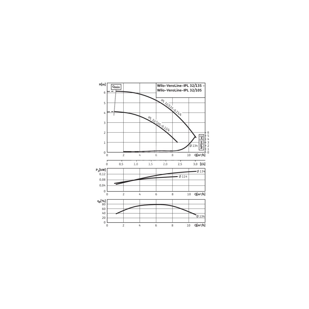 Pompa obiegowa WILO VeroLine-IPL 32/135-0,25/4 typu in-line z silnikiem znormalizowanym 50 Hz, moc silnika 0.25kW 0.69 A 1450 obr/min, wlot Kołnierz DN 32
