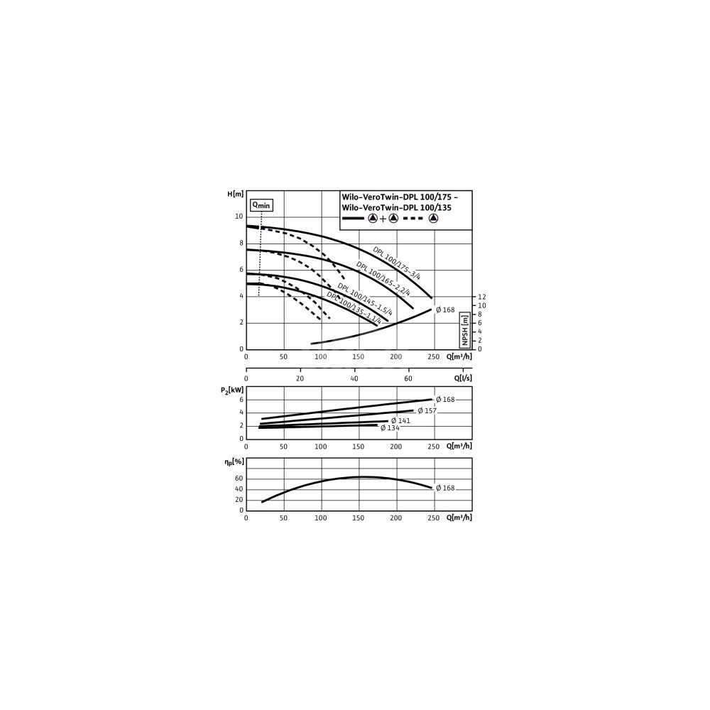 Pompa obiegowa WILO VeroTwin-DPL 100/175-3/4-IE3 typu in-line z silnikiem znormalizowanym 50 Hz, moc silnika 3kW 6 A 1450 obr/min, wlot Kołnierz DN 100