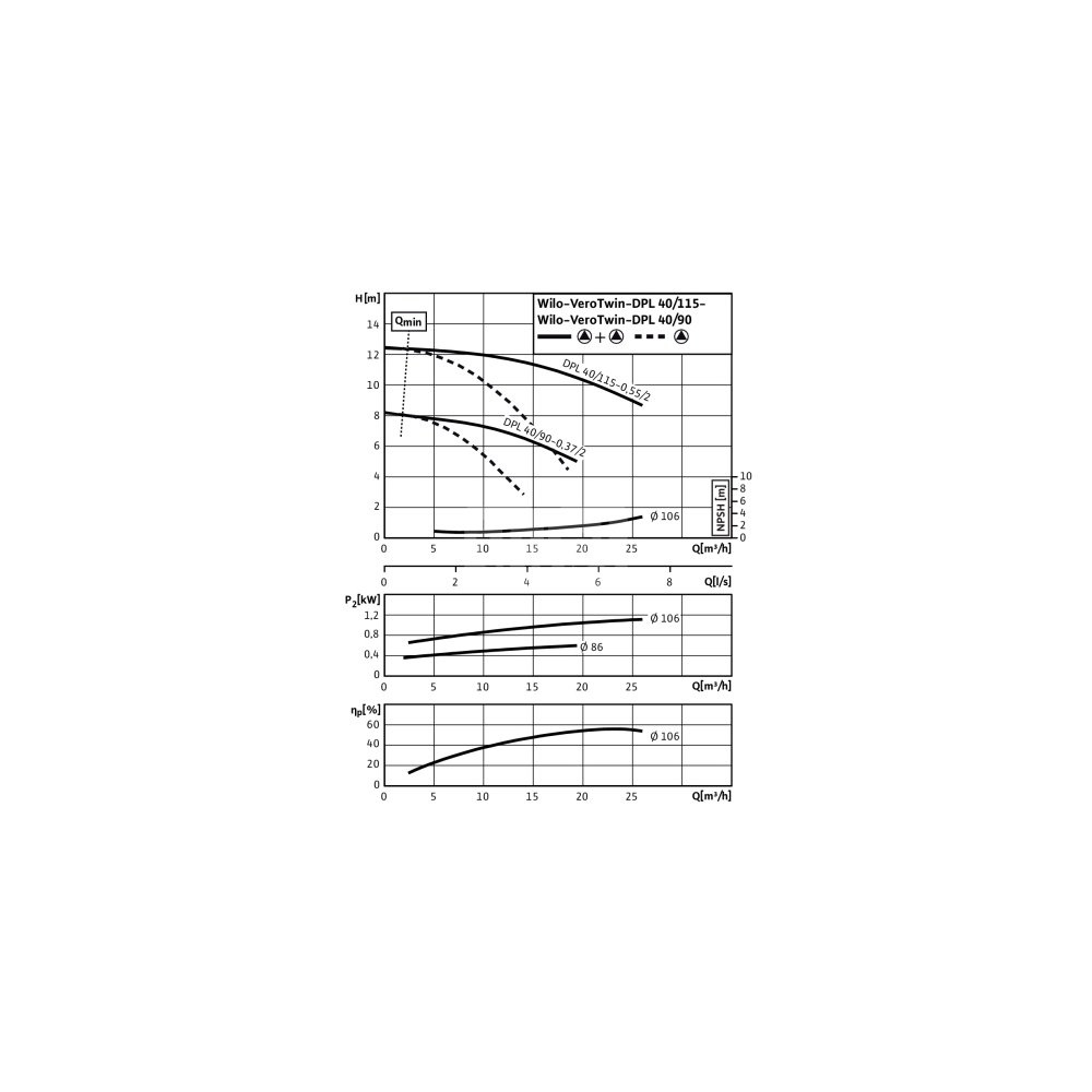 Pompa obiegowa WILO VeroTwin-DPL 40/90-0,37/2 typu in-line z silnikiem znormalizowanym 50 Hz, moc silnika 0.37kW 0.86 A 2900 obr/min, wlot Kołnierz DN 40