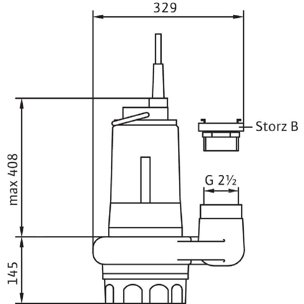 Całkowicie zanurzona pompa zatapialna do wody zanieczyszczonej, pionowe ustawienie mokre, do tłoczenia wody zanieczyszczonej i zawierającej piasek Korpus hydrauliczny i wirnik z żeliwa szarego, korpus silnika z aluminium. Przyłącze tłoczne z pionowym odpływem ciśnieniowym i złączem typu Storz. Samochłodzący silnik w wersji na prąd trójfazowy, z odłączanym kablem zasilającym z wyłącznikiem pływakowym i wtyczką wg standardu CEE z funkcją zamiany faz. Do uszczelnienia po stronie medium i silnika służy uszczelnienie mechaniczne. Agregat można stosować w podsysającym trybie pracy bez ograniczeń.