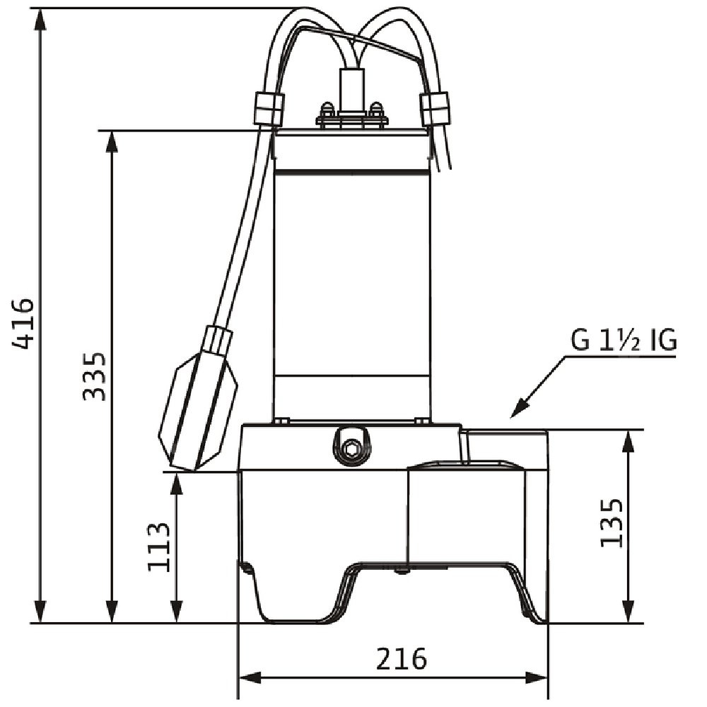 Całkowicie zanurzona pompa zatapialna do ścieków do stacjonarnego i przenośnego ustawienia mokrego, do tłoczenia ścieków bez fekaliów i wody zanieczyszczonej. Korpus hydrauliczny z żeliwa szarego, wirnik z tworzywa sztucznego, korpus silnika ze stali nierdzewnej. Hydraulika z pionowym gwintowanym przyłączem tłocznym i wirnikiem o swobodnym przepływie. Chłodzony powierzchniowo silnik trójfazowy z automatyczną termiczną kontrolą silnika. Kabel zasilający bez wtyczki. Do uszczelnienia po stronie medium służy uszczelnienie mechaniczne, natomiast po stronie silnika pierścień uszczelniający wału. Wszystkie urządzenia bez certyfikatu Ex.