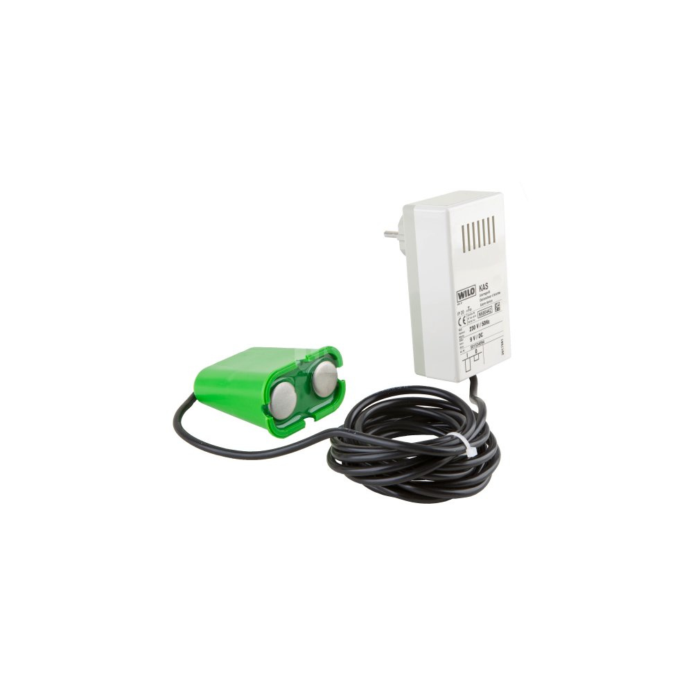 Niezależne od sieci małe urządzenie alarmowe w obudowie wtyczki ISO z wtyczką z uziemieniem, akustycznym sygnałem alarmowym (65 dBA) i zamontowaną elektrodą z kablem 3 m do rejestracji poziomu.