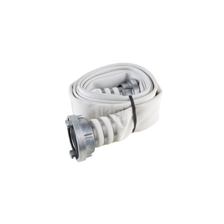 Wąż ciśnieniowy w wersji z włókien z tworzywa sztucznego (wąż gaśniczy; na zewnątrz włókna syntetyczne, wewnątrz powłoka gumowa) z zamontowanym złączem typu Storz do podłączania do przyłącza ciśnieniowego za pomocą odpowiedniego sztywnego szybkozłącza Storz.