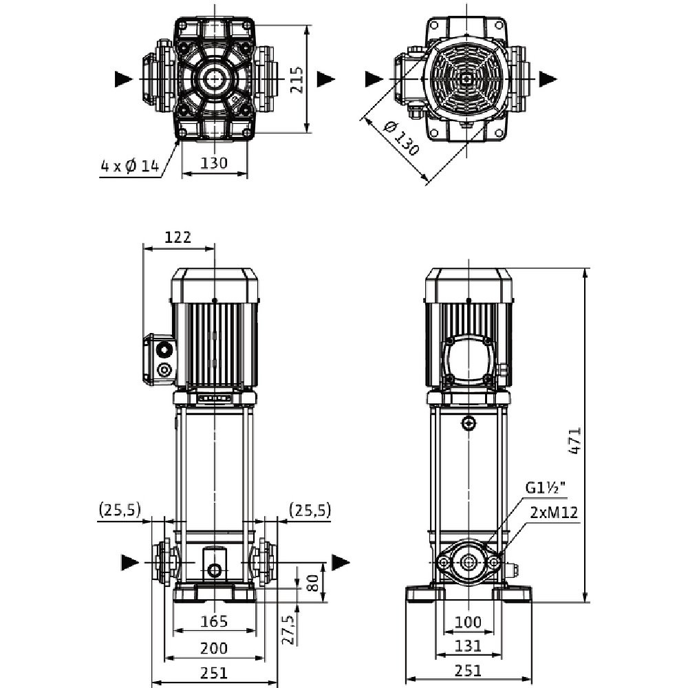 Pompa o kompaktowej konstrukcji z wałem przelotowym silnik-pompa i niezależnym od kierunku obrotów uszczelnieniem mechanicznym. Komory stopni, wirniki i kierownice przepływowe ze stali nierdzewnej. Płyta podstawy pompy z żeliwa z powłoką kataforetyczną z połączeniem kołnierzowym owalnym.