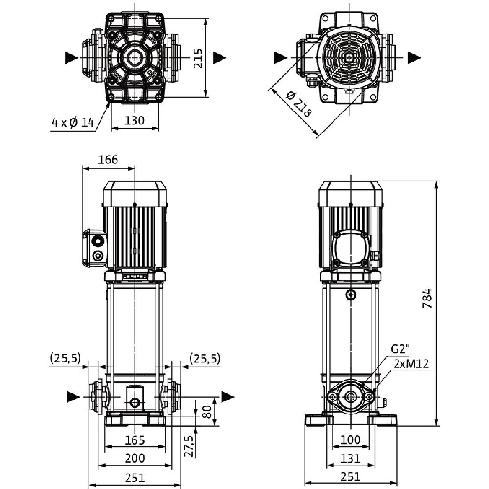 Pompa o kompaktowej konstrukcji z wałem przelotowym silnik-pompa i niezależnym od kierunku obrotów uszczelnieniem mechanicznym. Komory stopni, wirniki i kierownice przepływowe ze stali nierdzewnej. Płyta podstawy pompy z żeliwa z powłoką kataforetyczną z połączeniem kołnierzowym owalnym.