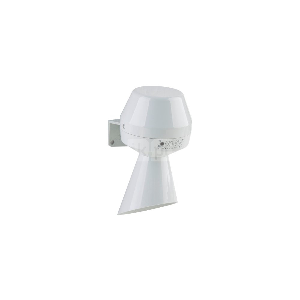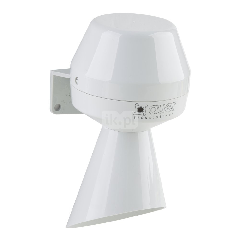 Buczek z lejem sterującym roznoszenie się dźwięku do wewnątrz i na zewnątrz do montażu naściennego. Sygnał alarmowy generowany przez elektromechaniczne wytwarzanie dźwięku z membraną stalową (88 dBA).