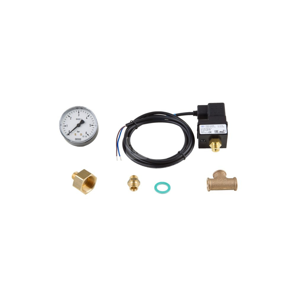 Przełącznik ciśnieniowy blokuje się przy ciśnieniu 1,0 bar, a zwalnia przy 1,3 bar (ustawienie fabryczne zgodnie z DIN 1988).