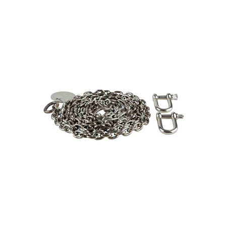 Łańcuch do podnoszenia, opuszczania i transportowania pomp i urządzeń do przetłaczania, z 2 szeklami, z ogniwami pośrednimi do zawieszania.