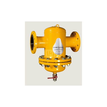 Separator zanieczyszczeń SPIROTRAP stalowy, rozbieralny. Jest to urządzenie bezobsługowe, pracujące bez siatek i filtrów, zapewniające ciągłą separację zanieczyszczeń stałych do najdrobniejszych cząstek, utrzymując instalację w stanie uzdatnienia - wolną od zanieczyszczeń. Wykonanie ze stali na rurociągi poziome DN50-DN300, połączenia kołnierzowe lub do wspawania - wersja rozbieralna (możliwość wyjęcia siatek - rur SPIRO).