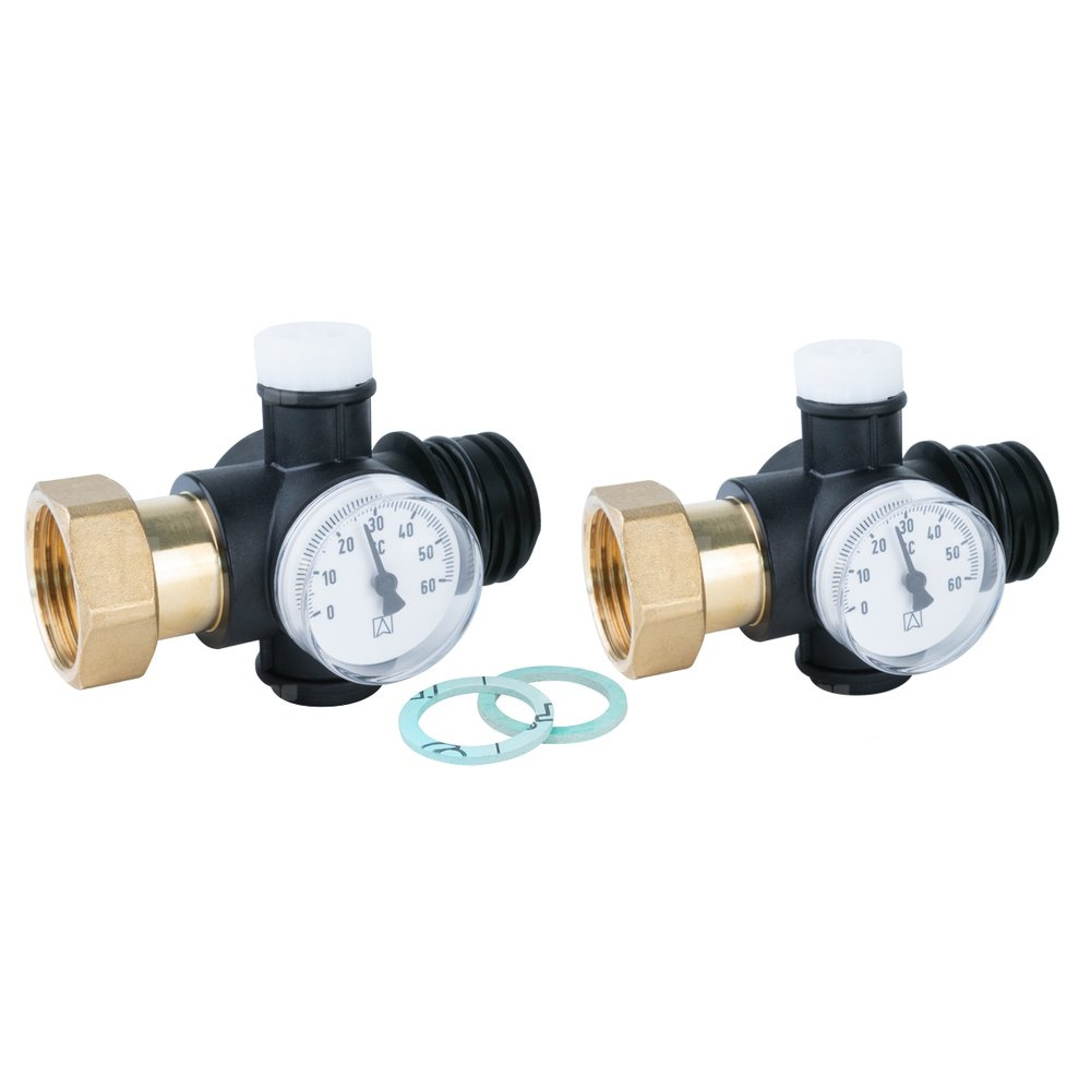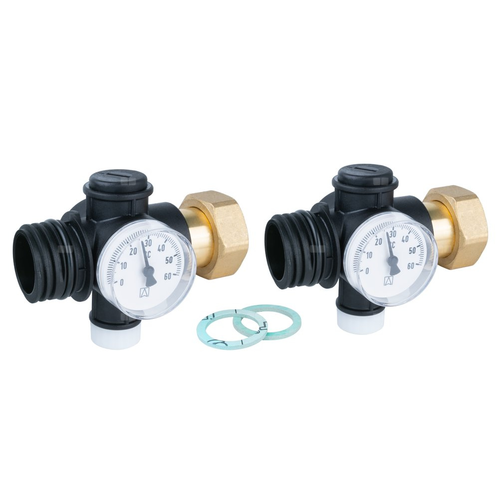 Wskazuje aktualną temperaturę medium w belce zasilającej i powrotnej rozdzielacza.