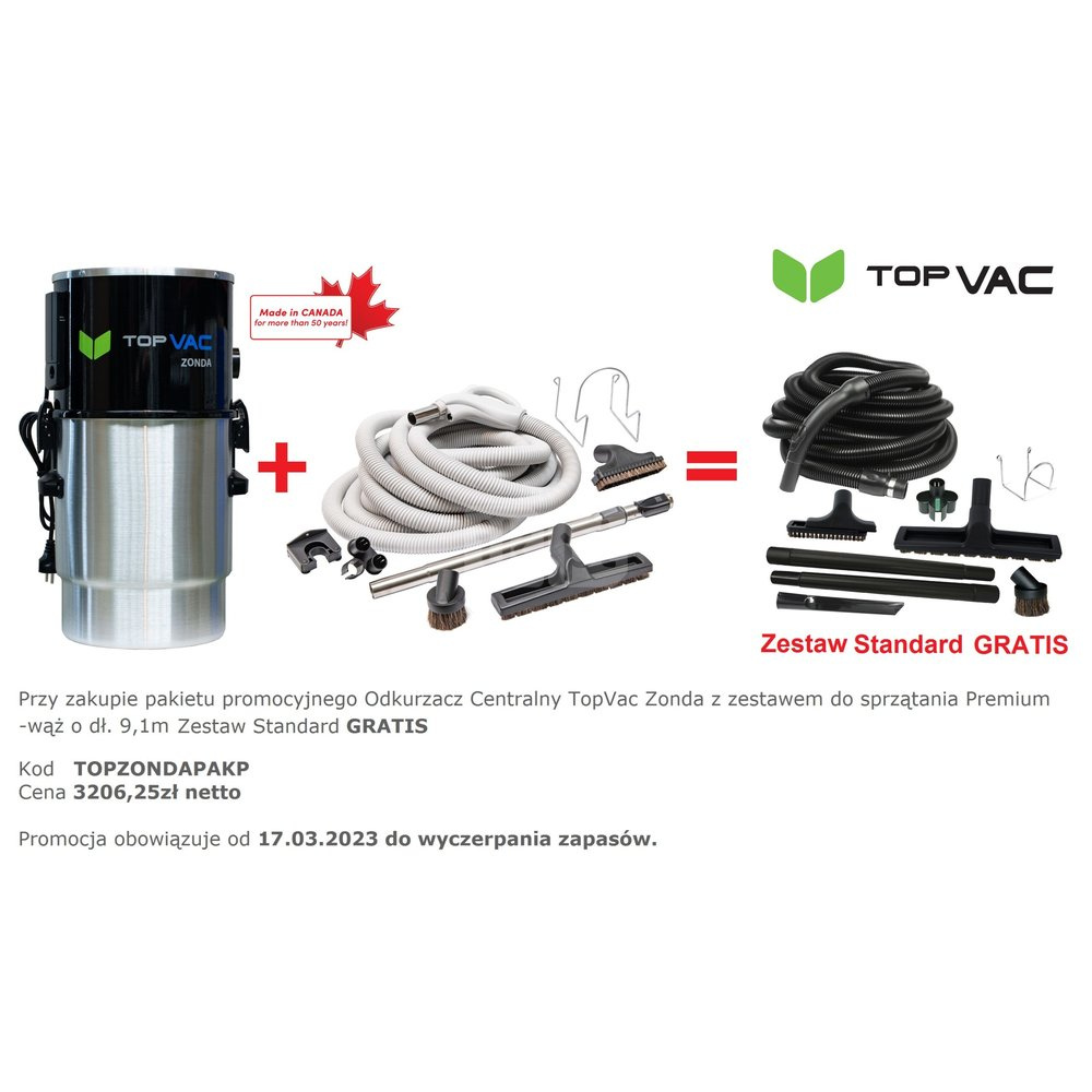 Uwaga promocja od 17.03.2023 przy zakupie pakietu odkurzacz Zonda z zestawem do sprzątania Premium dostają Państwa zestaw Standard GRATIS!