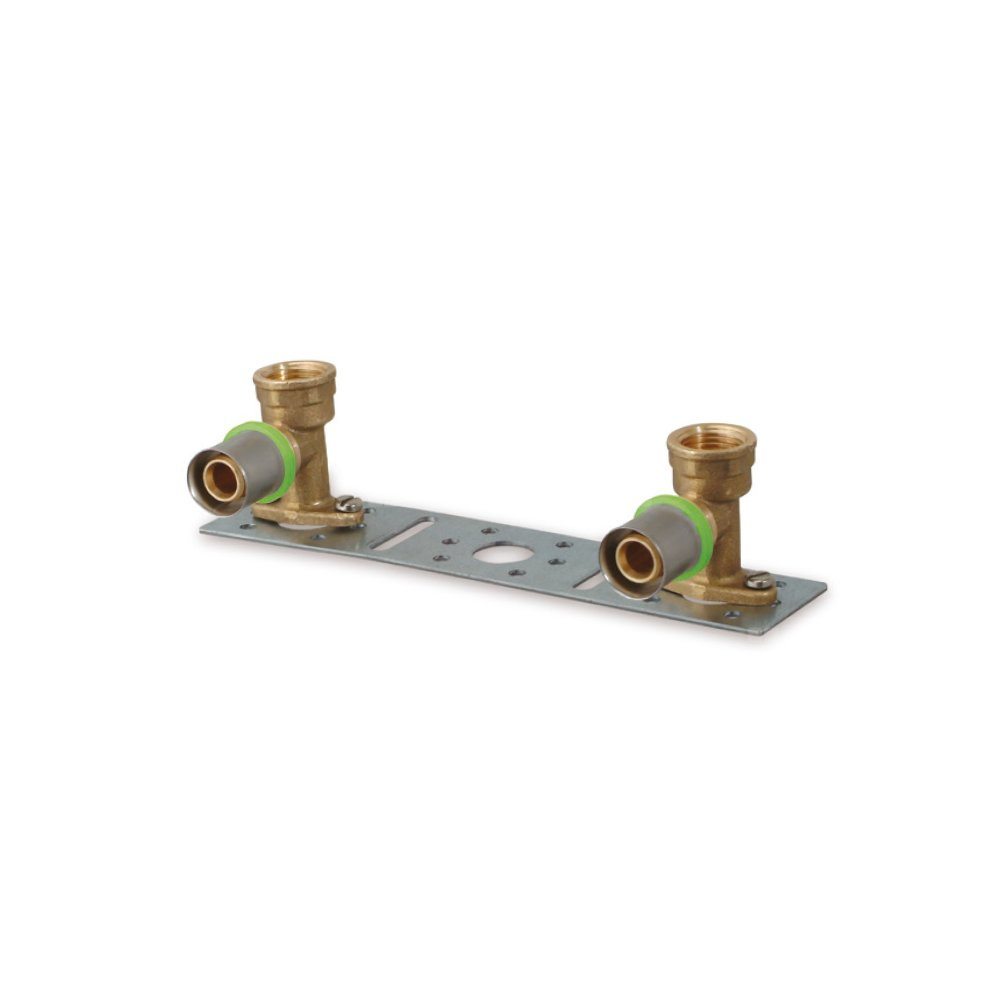 Kolano naścienne zaprasowywane na listwie QIK, mosiądz, 1/2'' x 20 mm (GW x złącze zaprasowywane), 40 mm