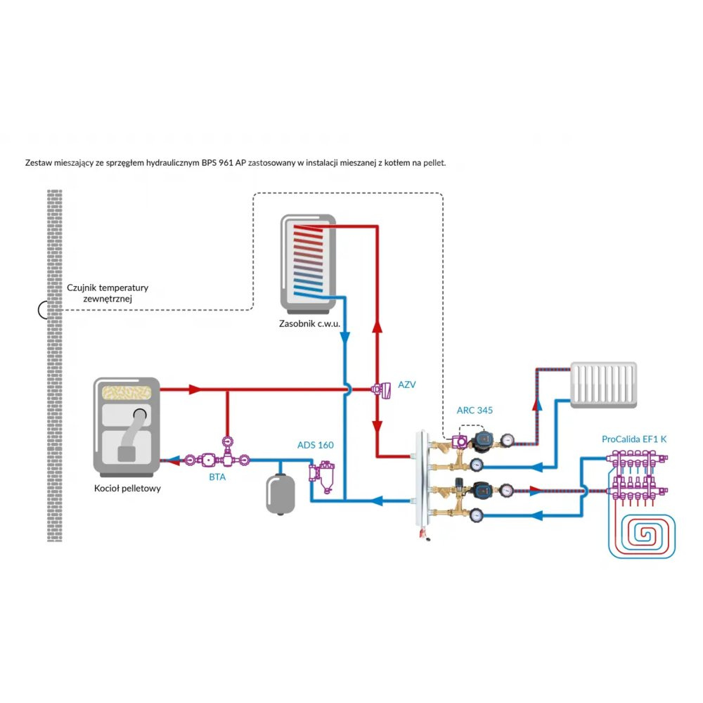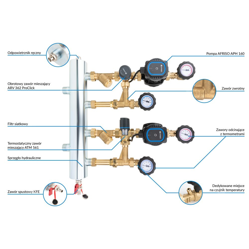 Grupa pompowa AFRISO BPS 961 AP GZ x GW 1'' x 3/4'', z zaworem mieszającym, z zaworem termostatycznym, z pompą obiegową