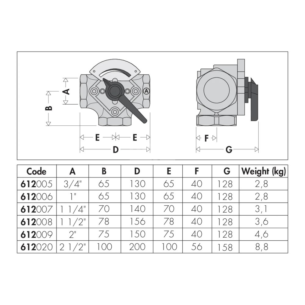 Zawór trójdrogowy mieszający. Przyłącza gwintowane Ustawienie fabryczne: zasilanie ze źródła ciepła z prawej strony. Do stosowania w ciężkich warunkach. Przyłącze: G 1 1/4" (ISO 228-1) GW. Maksymalne ciśnienie pracy: 6 bar. Zakres temperatury medium: 2–110 °C. Kv: 16,5 m³/h.