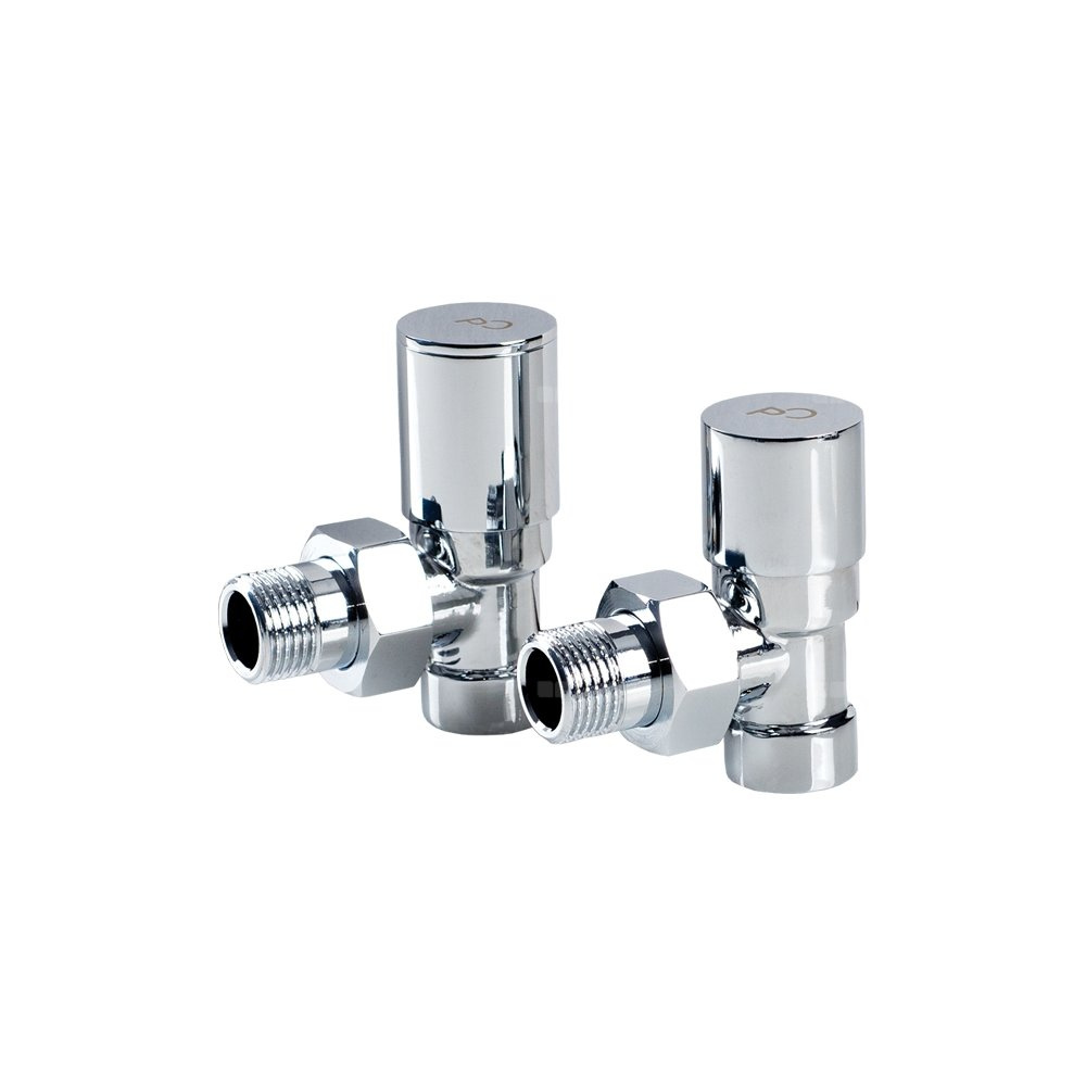 Zestaw zaworów grzejnikowych kątowych przeznaczony jest do montażu grzejników w instalacjach centralnego ogrzewania (w tym również grzejników łazienkowych). Wchodzący w skład zestawu zawór zasilający służy do regulacji strumienia czynnika grzewczego, natomiast zawór odcinający ma za zadanie zamknięcie przepływu czynnika grzewczego przez grzejnik. Gwinty przyłączeniowe ½”.