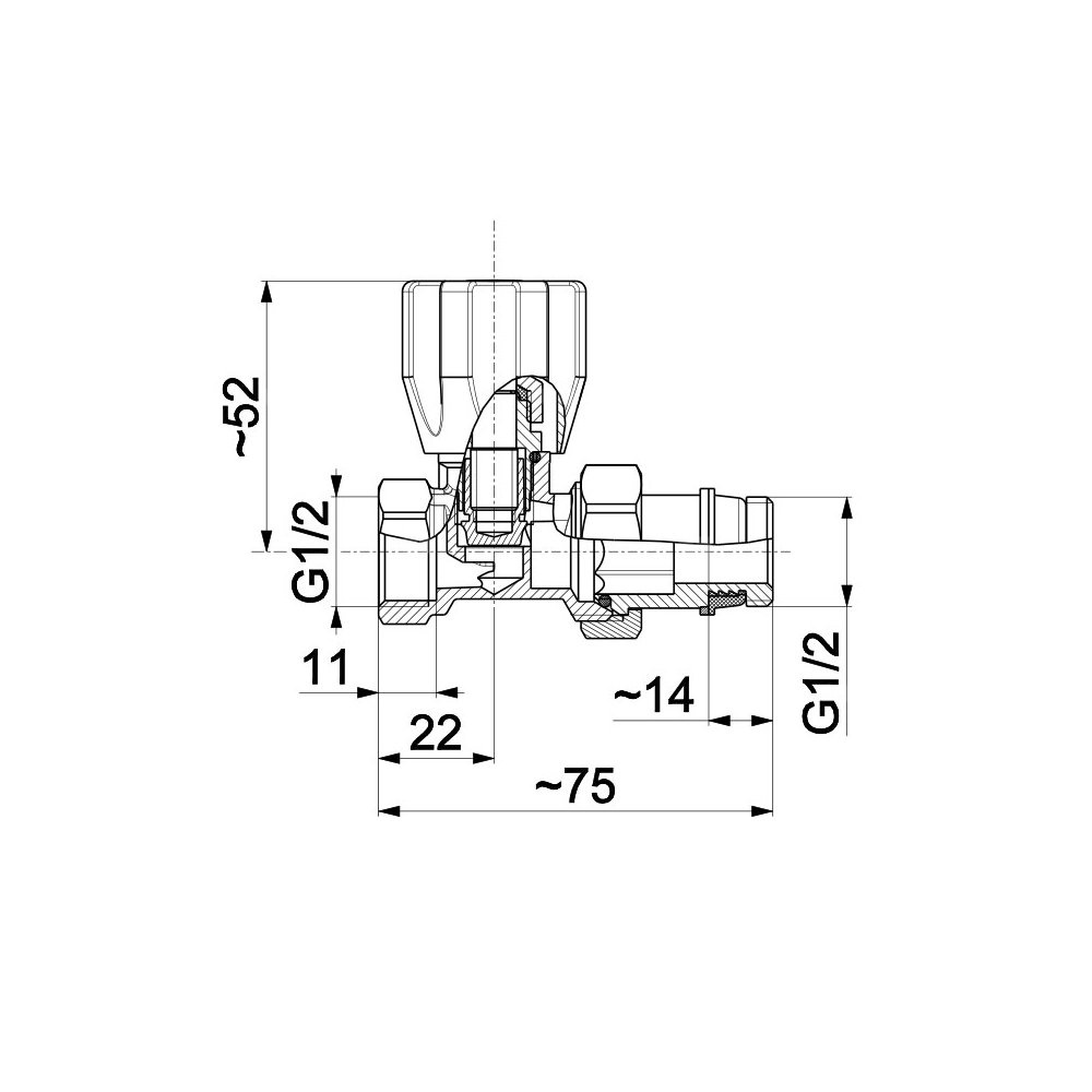 Zawór grzejnikowy, prosty, mosiężny, z dławikiem.